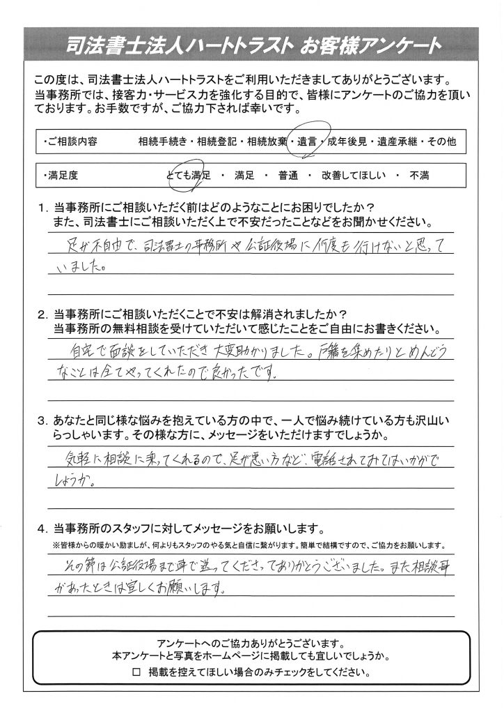 足が不自由で、司法書士の事務所や公証役場に何度も行けないと思っていました。